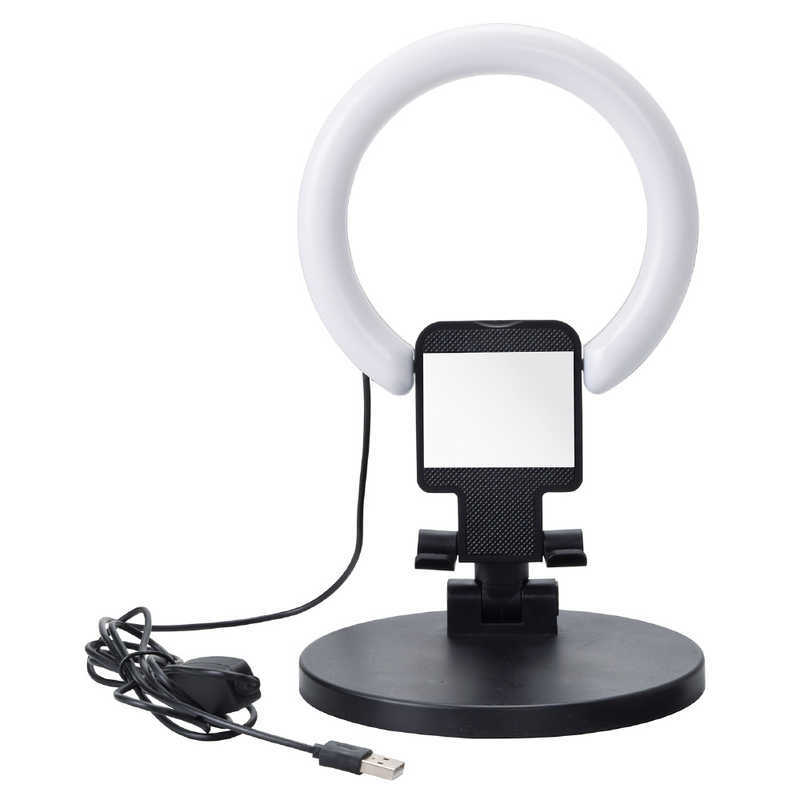 【商品解説】使用時も収納時もコンパクトなので使いやすさ抜群。「ライト&ミラー」「ライト&スマホ置き」等、用途に応じて使い分けができるので、あると便利なリングライトスタンドです。