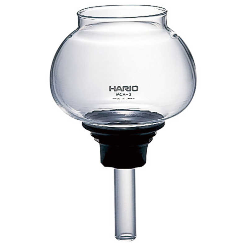 【商品解説】サイフォン「モカ」3人用は、上ボール・下ボール側面のHARIOのロゴの下に、『MCA3』と白いプリント文字が入っています。