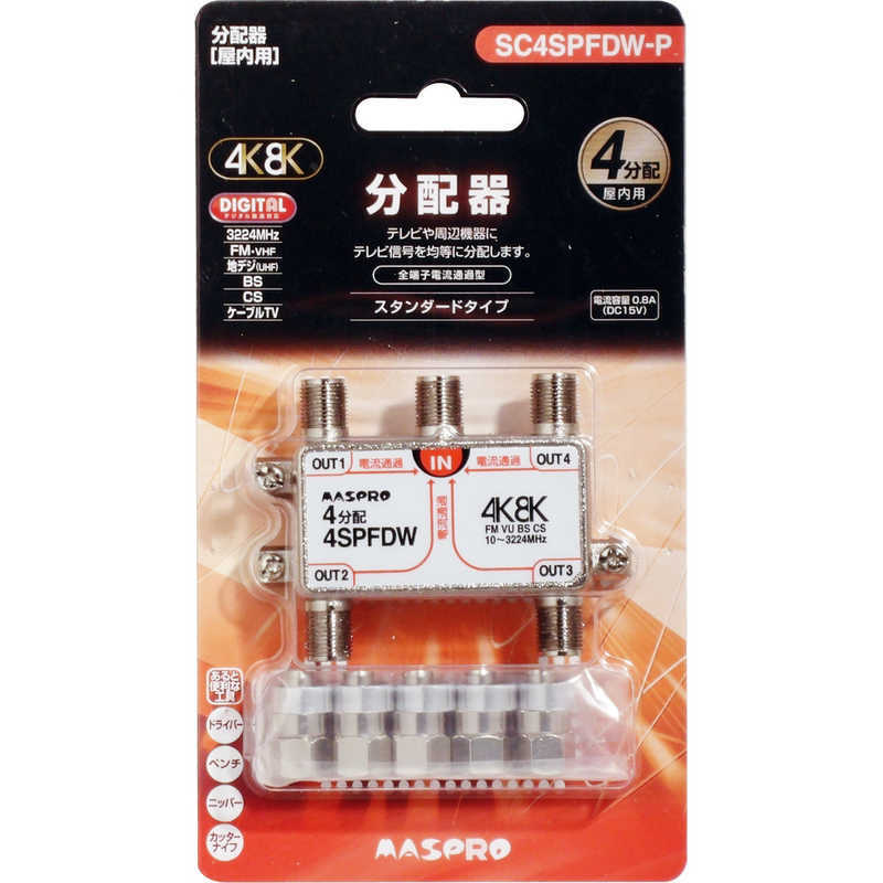 マスプロアンテナ 屋内用4分配器 全端子電流通過型 3224MHz対応 SC4SPFDWP