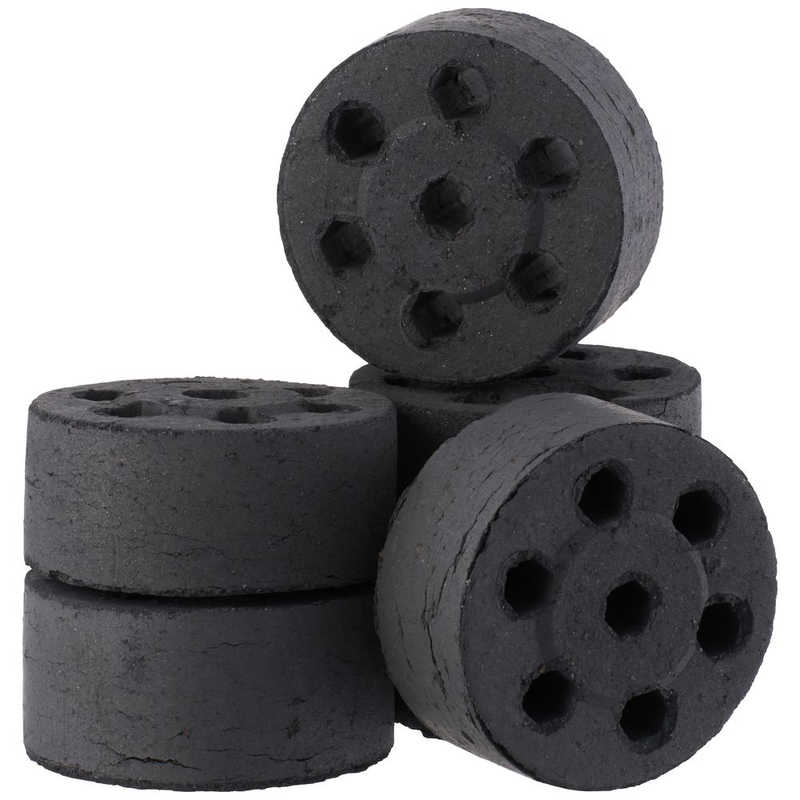 平たく成型したココナッツチャコールに通風孔を開け、さらに片側を凸面にしたことで、