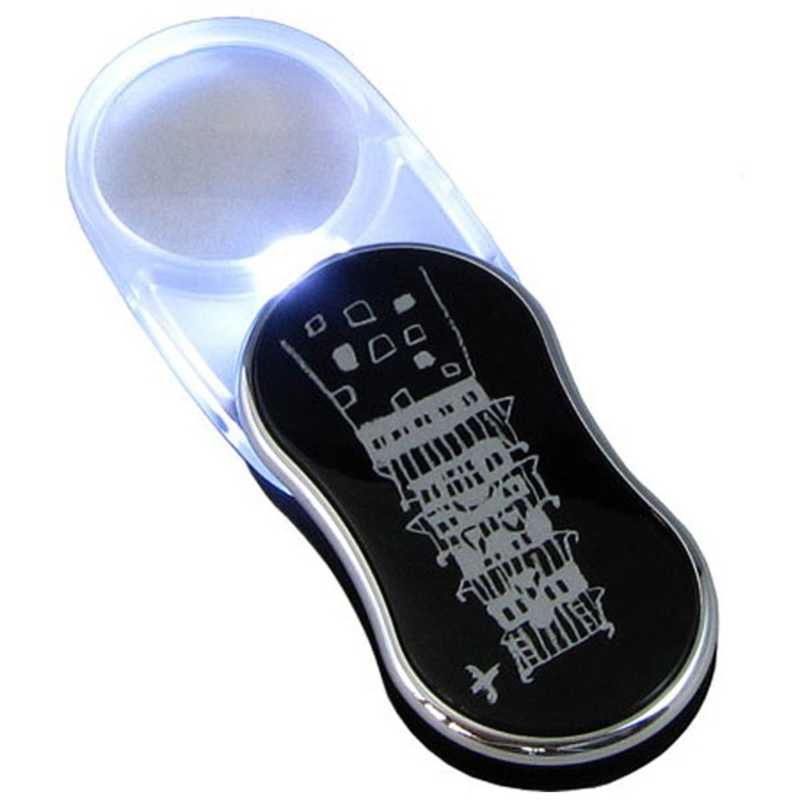 レンズを引き出すとLEDが点灯する携帯ルーペです。