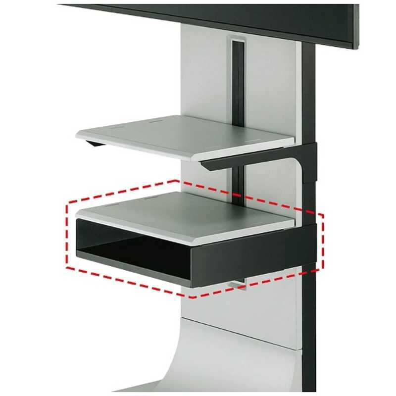 ・棚板に加工されたスリットと、付属の固定ベルトで機器の落下を防止。コーナーガード付属。2枚まで取付可。