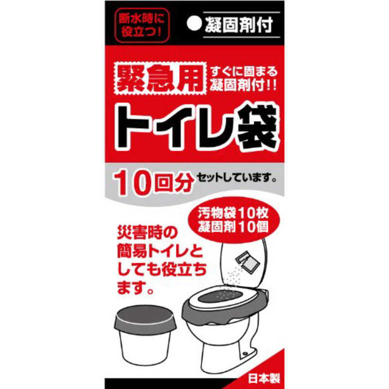 ●汚物袋10枚、凝固剤10個、水濡れ防止袋1枚付きです。