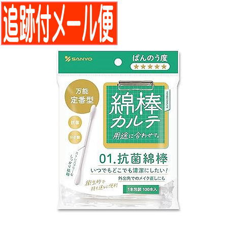 【メール便送料無料】綿棒カルテ 抗菌綿棒 100本 個包装