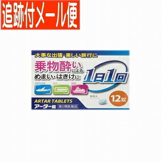 アーター錠は1日1回の服用で,乗物の動揺や加速度によって起きる神経の興奮をしずめ,乗物によるめまい・吐き気・頭痛の発生をおさえたり,緩和します。車・船・飛行機などに乗る約30分前に服用すれば不快な乗物酔いから解放され,旅行や趣味などがいっそう楽しくなります。