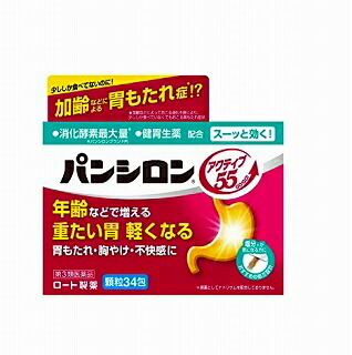 製品の特徴 パンシロン アクティブ55は年齢などで増える重たい胃や,胃もたれ・胸やけ・不快感に効く胃腸薬です。