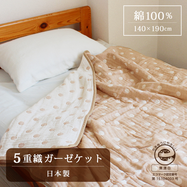 ガーゼケット 日本製 シングル おしゃれ 5重 綿100 140×190cm タオルケット オールシーズン 肌掛け 夏掛け 水玉 ドット柄 ナチュラル 爆買
