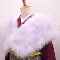 毛足の長いパープルのラメ入りの羽毛と、白いマラボーのリバーシブルショールです。 スナップで留めるタイプのデザインです。