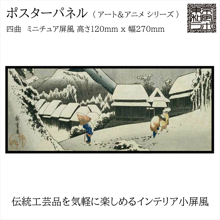 東京和風ラボ インテリア小屏風シリーズ イラスト屏風【蒲原宿 歌川広重】ミニ屏風 アート&アニメ Sサイズ 四曲 H120xW270 ハンドメイド TRM04-S