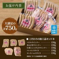 ■内容量:バジルウインナー(150g)・あらびきウインナー(150g)・行者ニンニク入りウインナー(150g)・ベーコンスライス(150g)・ロースハムスライス(150g)