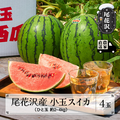 ふるさと納税 尾花沢市 【先行受付】尾花沢産小玉スイカ(約2〜4kg)×4玉 令和8年産 観光物産 kb-sukxx4-7b