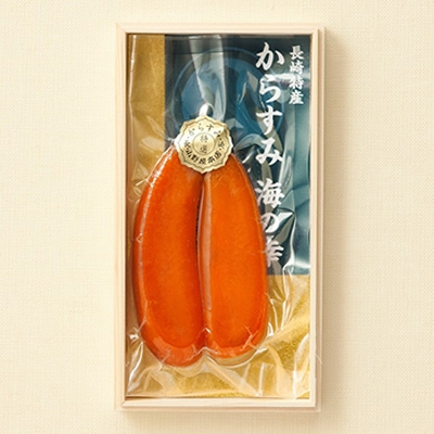 古来より高級珍味として有名な長崎名産のからすみ。からすみはボラの卵を塩に漬けおよそ3週間〜1か月天日干ししてできます。長崎では古くより贈答品としてお使いいただいています。薄くスライスしてお酒のつまみに、また、細かく砕いてパスタの材料にも美味しいです。お酒は日本酒、焼酎、ワイン、ウイスキーと色んな種類に合います。ぜひお試しください。
