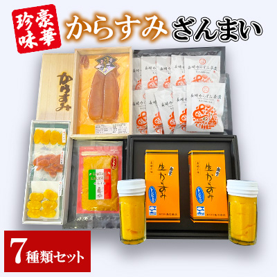 そのからすみでひと手間かけた味付からすみ・パウダー・お茶漬けをセットにし、からすみ製造前の生からすみもお付けしました。