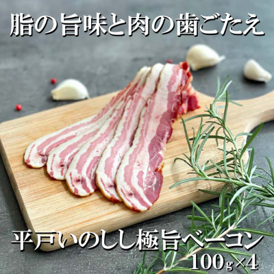 ふるさと納税 佐世保市 NEWジビエ 平戸いのしし(平戸市・佐世保市・松浦市産) 極旨ベーコンスライス 100g×4セット