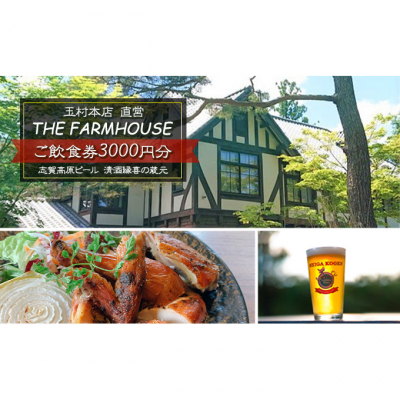 ・志賀高原ビール 玉村本店 直営レストラン THE FARMHOUSE ご飲食券3000円分[【THE FARMHOUSE 】でのご飲食券3,000円分(1,000円×3枚)]
