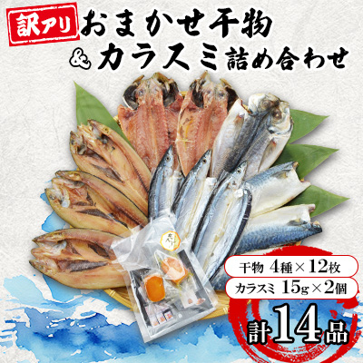 ・訳ありおまかせ干物とカットからすみ[ワケありお任せ干物12枚、カットからすみ15g×2]