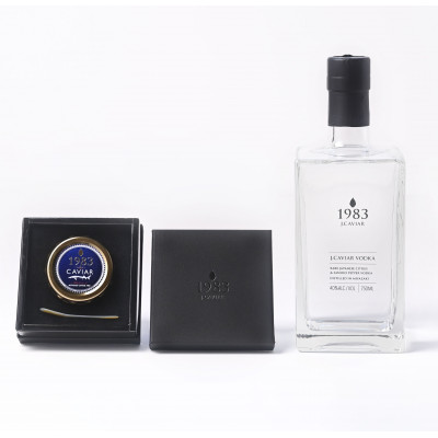 宮崎県産の本格熟成フレッシュキャビア「宮崎キャビア1983」と、キャビア職人がキャビアのために開発したウォッカとのセットです。