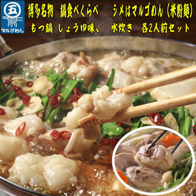 ふるさと納税 志免町 【博多名物】福岡県産ハーブ鶏水炊き&国産牛もつ鍋(醤油味)食べ比べセット 各2人前(志免町)