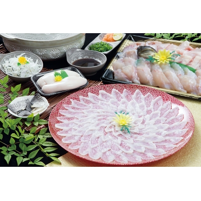 こちらの品は、淡路島3年とらふぐの ふぐ鍋・ふぐ刺し・白子付きフルコースセット。