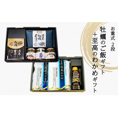 ふるさと納税 石巻市 お重式「牡蠣のご飯ギフト+至高のわかめギフト」2段