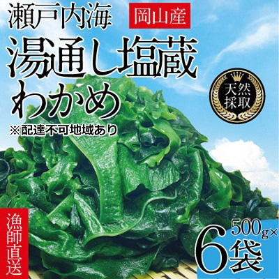 ふるさと納税 瀬戸内市 湯通し塩蔵 瀬戸内 わかめ 500g×6袋【岡山 瀬戸内海 天然 塩蔵】[No.5735-1284]