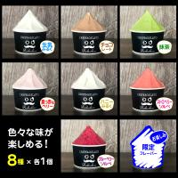 生乳100%みるく、チョコレート、抹茶、真っ赤なベリー、ハニーみるく、ストロベリーソルベ、ブルーベリーソルベの定番7種類に、季節などにより変わる限定フレーバー1種類の計8種類をお届けします。