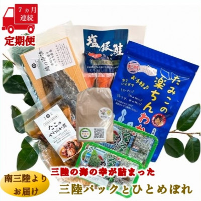 1〜7回 三陸の海の恵みをご自宅で手軽に!三陸パック&ひとめぼれ米2合セット