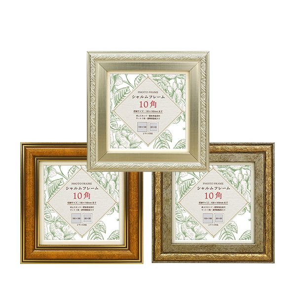 ましかくフォトフレーム 10角 額縁 シャルムフレーム シルバー キャメル ダークゴールド 兼用 かぶせ箱付 万丈