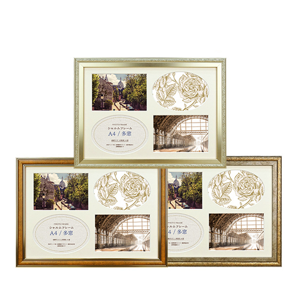 フォトフレーム 額縁 A4 多窓 兼用 シャルムフレーム シルバー キャメル ダークゴールド かぶせ箱付 万丈