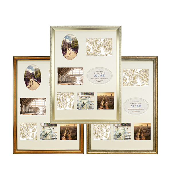 フォトフレーム 額縁 A3 多窓 兼用 シャルムフレーム シルバー キャメル ダークゴールド かぶせ箱付 万丈