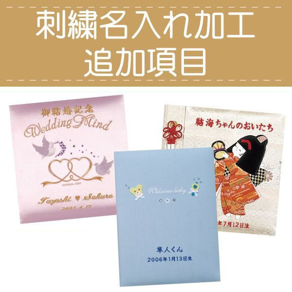 【刺繍,名入れ,名前,文字,記念,贈り物,プレゼント,誕生日,成長,祝,結婚,婚礼,ブライダル,ウェディング,贈答,入学,還暦祝,成人式】