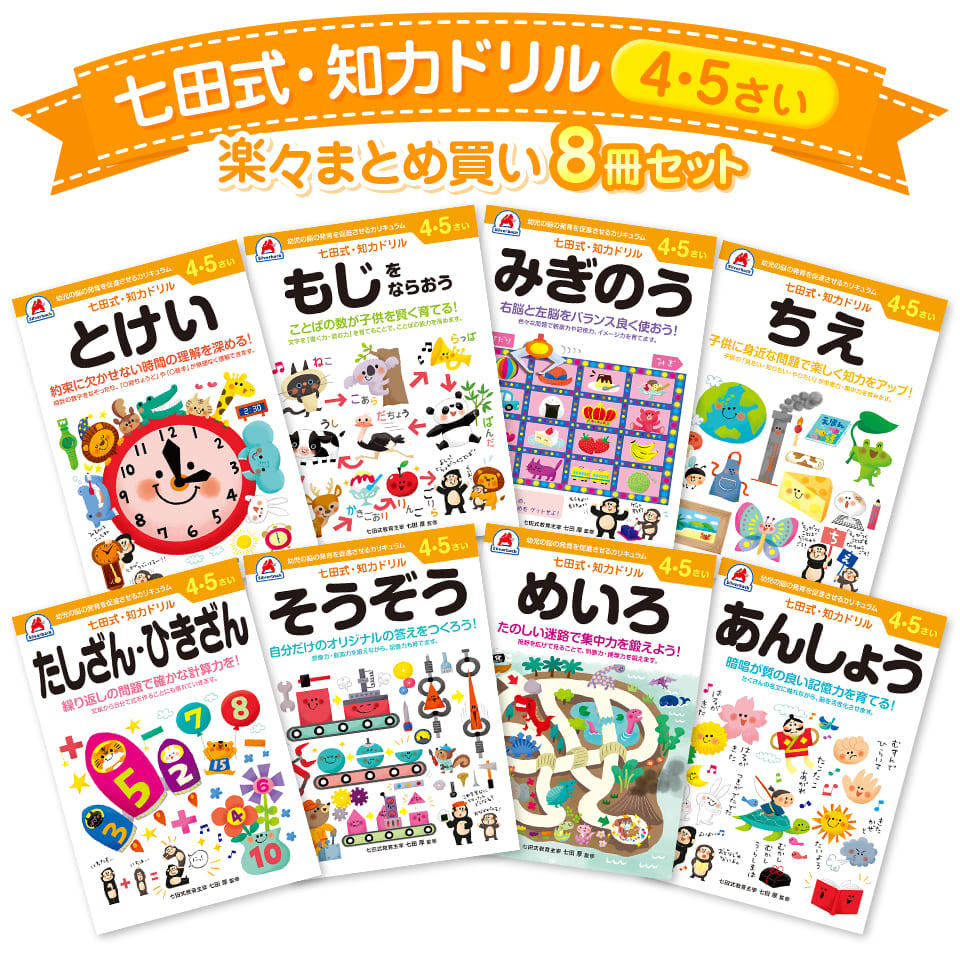 七田式・知力ドリル 4歳 5歳 8冊セット プリント 子供 幼児 知育 教育 勉強 学習 右脳 左脳 幼稚園 小学校 入園 入学 お祝い プレゼント 準備