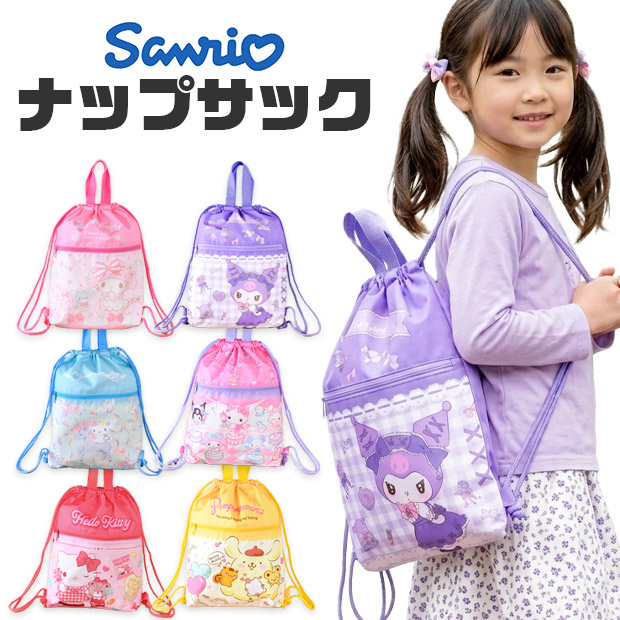 サンリオ ナップサック キッズ リュックサック リュック 女の子 子供 通学 通園 体操服入れ 撥水 抗菌 軽い 習い事 レッスンバッグ 持ち手付き 小学生 幼稚園 保育園 かわいい キャラクター サンリオキャラ プールバッグ 入学 入園 準備 ハローキティ キティ マイメロ マイメロディ クロミ シナモロール シナモンロール シナモン ポムポムプリン サンリオキャラクターズ
