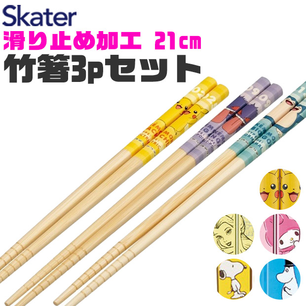 SKATER スケーター 箸 お箸 竹箸 おはし 子供 こども 21cm キャラクター かわいい セット 3pセット 3本セット サンリオ 3膳 ディズニー 滑り止め おしゃれ シンプル 男の子 女の子 ギフト プレゼント 大人 男児 女児 女性 お箸 3本 カラフル 竹 スヌーピー ムーミン プリンセス マイメロディ クロミ シナモロール ポケットモンスター NARUTO 丸タイプ 滑り止め加工