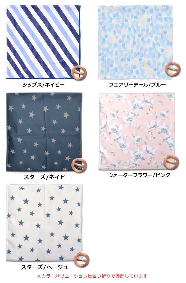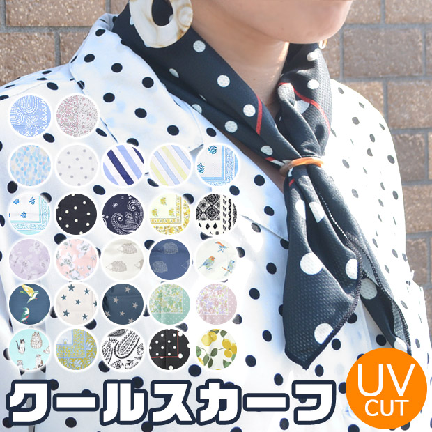 夏の熱中症対策に!ぬらして、ひんやり冷感!クールスカーフ新登場!お好みのデザインが必ず見つかる全9柄。水にぬらせば何度でも冷たくなる接触冷感素材のクールスカーフは、通勤通学に、スポーツに、アウトドアにと大活躍です♪