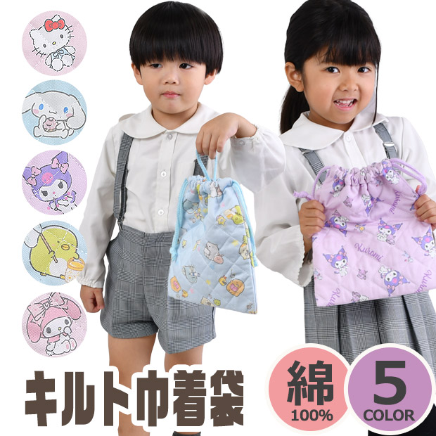 キルト巾着 巾着袋 男の子 女の子 キルティング生地 コップ袋 コップ巾着 コップ入れ歯 ブラシ入れ サンリオ サンエックス キャラクター 人気柄 ポーチ キルティング キッズ ジュニア 子供 入学 入園 手提げ 通学 通園 すみっコぐらし すみっこぐらしサンリオ ハローキティ マイメロディ クロミ シナモンロール シナモロール キャラクター 総柄 可愛い ブルー ピンク パープル レッド 入園入学グッズ ギフト お祝い ネームタグ付き 小学校 保育園 幼稚園 ナフキン入れ 給食袋 畑山商事