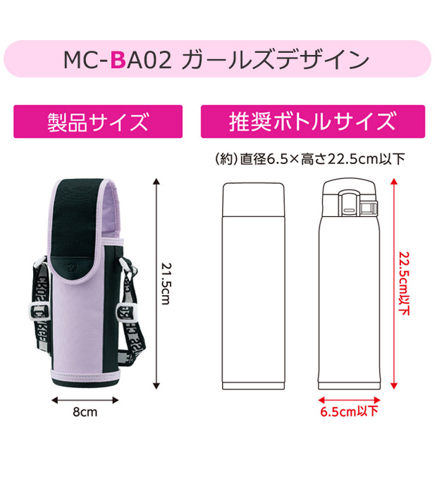 【MC-BA02】ガールズデザイン/W8×H21.5cm 重さ約80g、推奨ボトルサイズ(約)直径6.5×高さ22.5cm以下