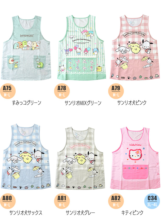 エプロン キャラクター かわいい レディース M L LL 3L 4L XL エプロン ラン型 エプロン かぶり エプロン 保育士 大きいサイズ 新柄 婦人 サイドボタン かわいい ポケット付き 介護士 看護師 家事 エプロン 保育園 幼稚園 かわいい M L 家事 幼稚園 先生 保育園 給食 学校 育児 母の日 ギフト プレゼント キャラクターエプロン 割ぽう着 サロンジェ サンリオ ポチャッコ すみっコぐらし シナモロール リラックマ マイメロディ クロミ キティ ドラえもん キャラクターズ