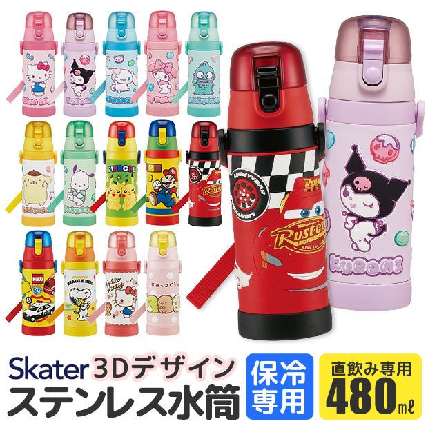 SKATER スケーター 水筒 3D ロック付 ワンプッシュダイレクトボトル 480ml 超軽量 コンパクトロック付き ワンプッシュ ダイレクトステンレスボトル 女の子 男の子 キャラクター ショルダー 斜め掛け 肩ひも付き 広口 氷が入れやすい 立体 3Dデザイン 水筒 キッズ ステンレス 水筒 可愛い 水筒 子供 水筒 直飲み 水筒 おしゃれ キッズ 水筒 保冷 キッズ 水筒 女の子 キッズ 水筒 直飲み 子ども かわいい キッズ ステンレス 保冷 ロック付き キャラクター 女の子柄 かわいい おしゃれ スケーター株式会社 SDPV5 BPAフリー BPA-Free