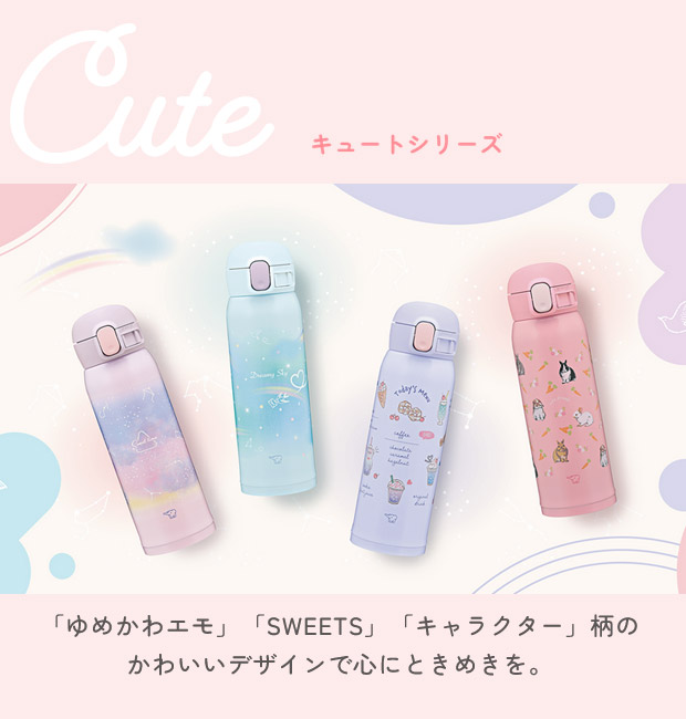 キュートタイプはゆめかわなデザインや、かわいらしい飲みものをモチーフにしたスイートなデザイン、動物をモチーフにしたデザインなど4色で展開。