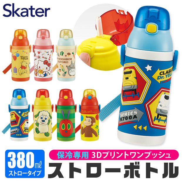 スケーター 水筒 380ml 水筒 スケーター ストロー ステンレス ボトル 3Dプリント 二層構造 保冷専用 保冷 水筒 ストロー 380 子供 もれない ステンレス 軽量 おしゃれ 肩掛け ショルダー ショルダーベルト付き コップ付き ワンタッチ キッズ 男の子 女の子 子ども ストロー飲み ストローボトル くまのプーさん POOH ハローキティ キティちゃん となりのトトロ トトロ ジブリ プラレール 新幹線 電車 いないいないばあっ はらぺこあおむし 絵本 キャラクター おさるのジョージ アニメ 立体 3D 立体プリント エンボス加工 SKATER