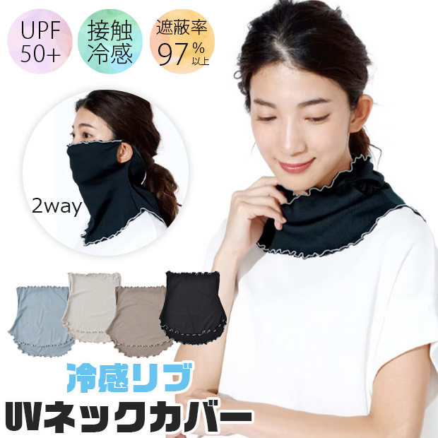 クールネックカバー リブメロウネックカバー 接触冷感 UVカット ネックカバー フェイスガード レディース ひんやり 紫外線カット 首 日焼け対策 おしゃれ 熱中症対策 紫外線対策 暑さ対策 寒さ対策 かわいい グレー ブルー ブラック 夏 女性 通勤 通学 アウトドア レジャー 旅行 トラベル 首元 スポーツ 日焼け防止