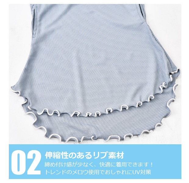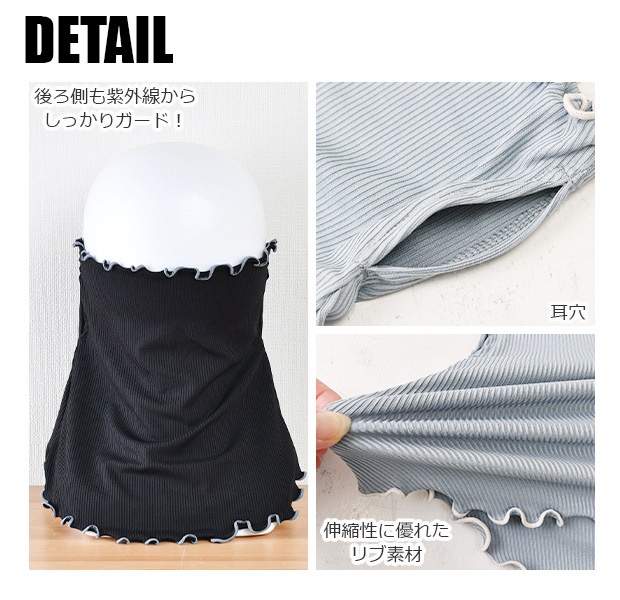 フェイスガードにもネックカバーにもなる2wayタイプの紫外線対策&接触冷感アイテムです。メロウリブが甘さをプラス、かわいらしいデザイン♪
