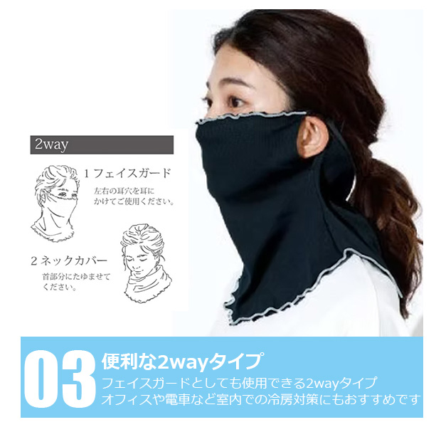 フェイスガードにもネックカバーにもなる2wayタイプの紫外線対策&接触冷感アイテムです。