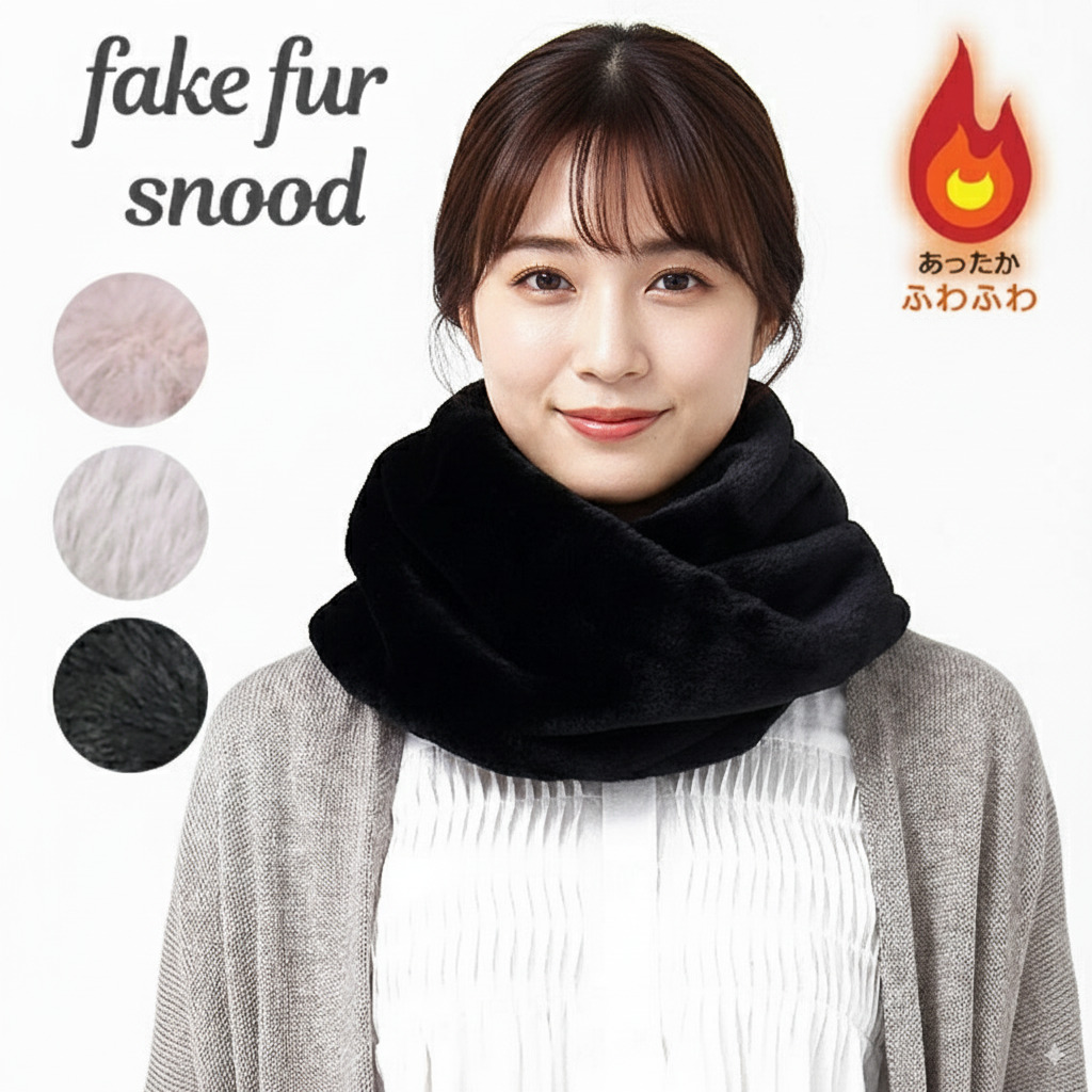 スヌード ファースヌード ネックウォーマー レディース マフラー フェイクファー おしゃれ ネック ウォーマー デザイン 女の子 防寒 温活 かぶるだけ ふわふわ おしゃれ 防寒 秋冬 裏起毛 無地 巻物 冷え対策 シンプル もこもこ フェイク ファー ブラック ピンク グレー 黒 かぶりタイプ あったか小物 オーブ
