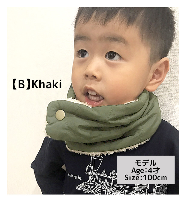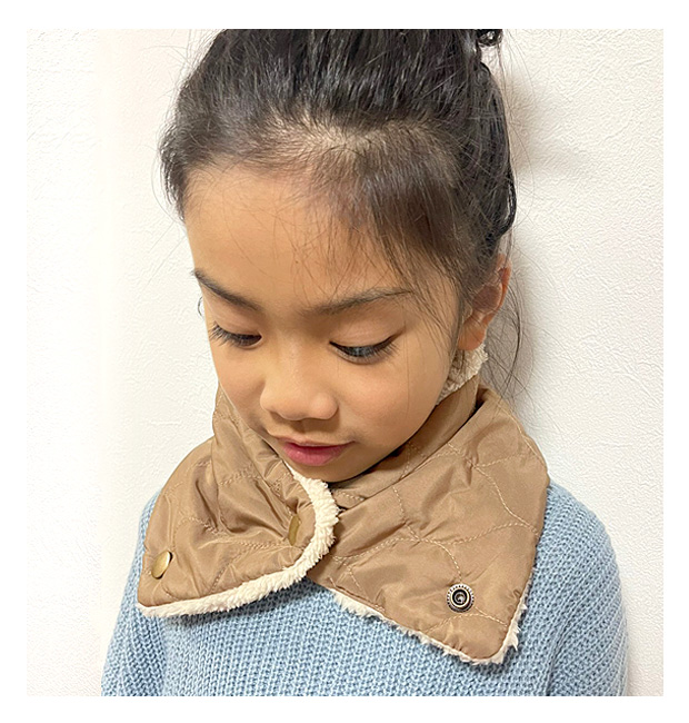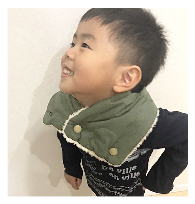 一般的なマフラーのようにほどける心配がないので、元気に動き回るキッズにも安心です。
