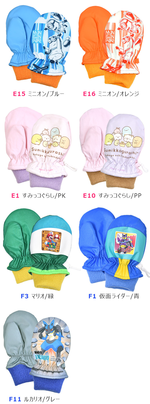 人気のキャラクターが大集合!3-4才用スキーミトン手袋の登場です。