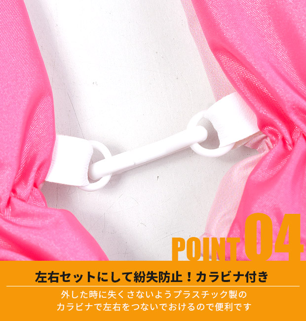 外した時に失くさないようプラスチック製カラビナで左右をつないでおけるので便利です。