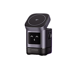 前面スクリーンに表示されるロボットの表情で充電状況がわかり、充電時をワクワク体験に変える近未来的ガジェットです。iPhone、AirPodsなどを3台同時に充電可能で、最大15W出力ができるQi2対応の充電器です。iPhoneをわずか約2.5時間でフル充電可能です(iPhone 15の場合)。