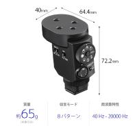 仕様3 | チャンネル音声出力:アナログ 2ch / デジタル 4ch シュー形状:マルチインターフェースシュー 形式:バックエレクトレットコンデンサー型 周波数特性:40Hz - 20000Hz |